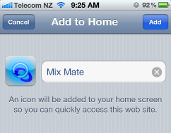 3. Tap ’Add’ to save. The Mate will add an icon to your Home Screen.